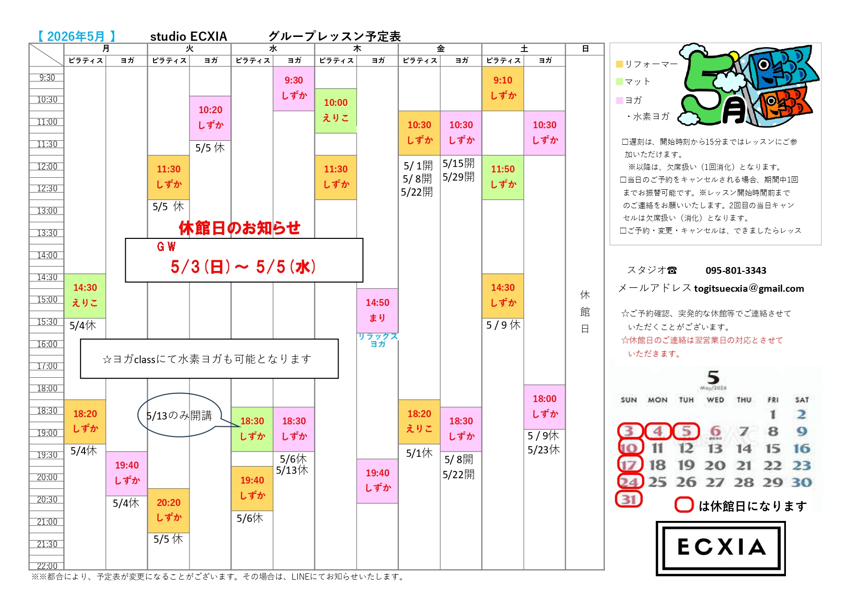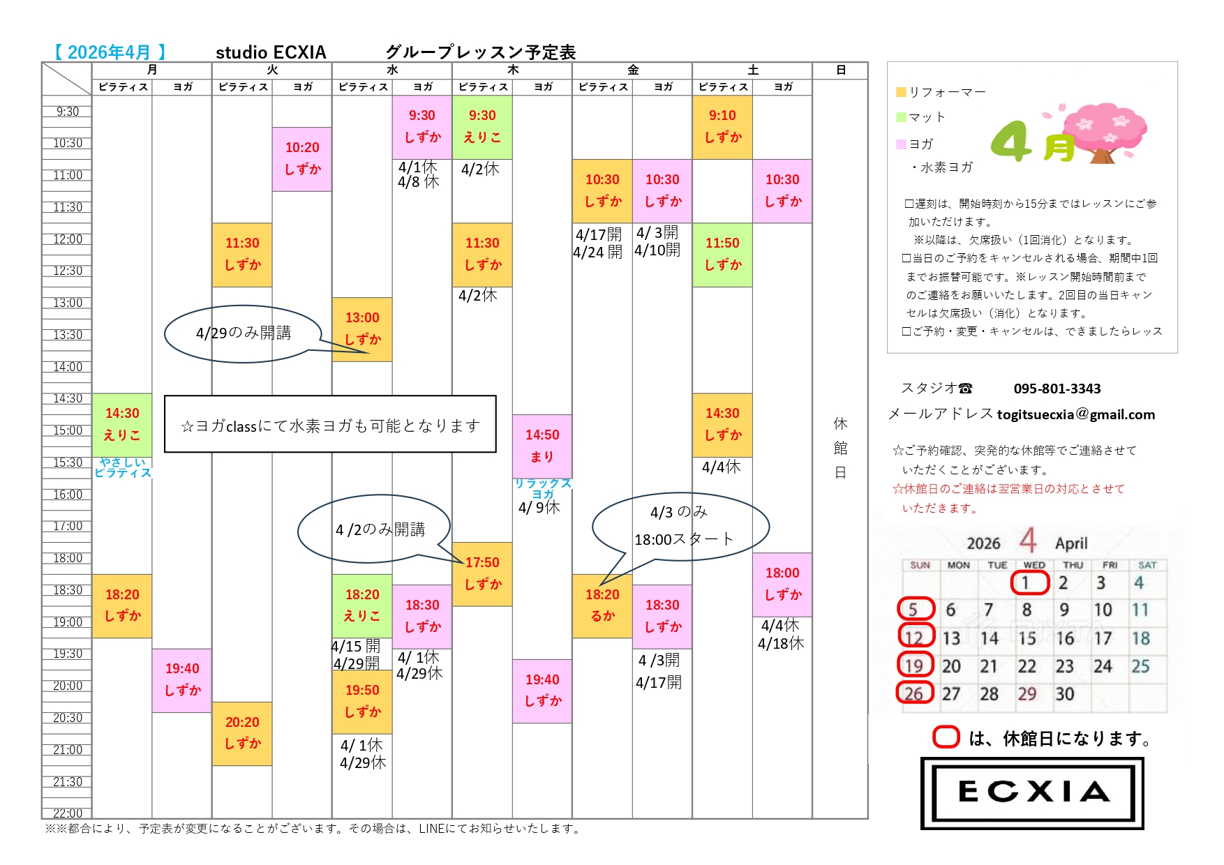 2026.4月グループレッスン表